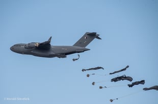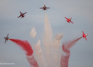 Upper picture: Cargo dropping from a C-17 Transport Aircraft. And of course the entire media day was closed by a perfect demonstration of the Turkish Stars aerial Demonstration Team and a very nice dinner at the platform of the exercise area. Thanks to the Turkish Ministery of Defence, major-general Meta Kus and the entire communication and PR team of the Turkish Air Force for their hospitality. See you next year!